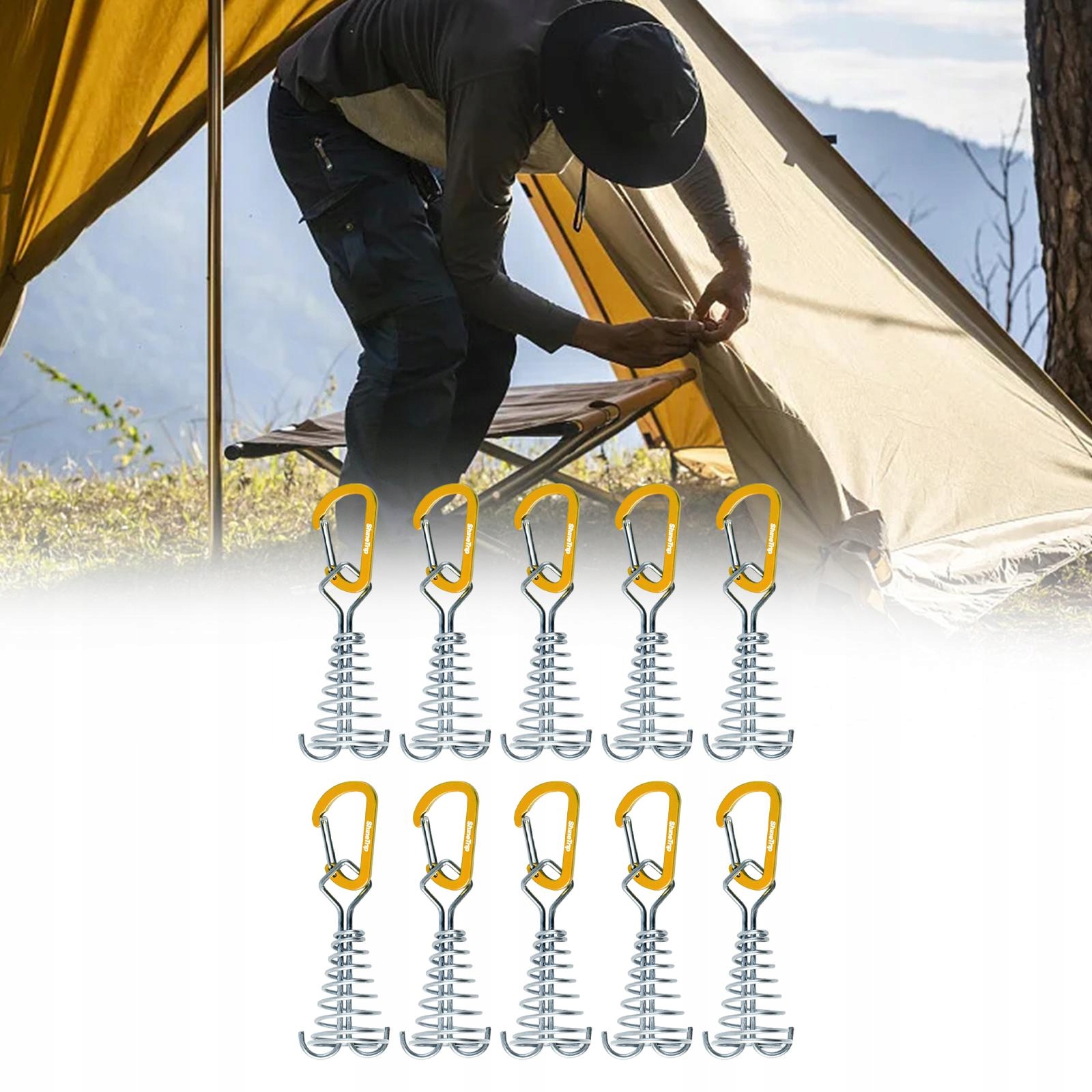 10 шт. Анкерні кілки для палуб, кріплення для наметів, кріплення до наметів із затискачами для карабінів, золото