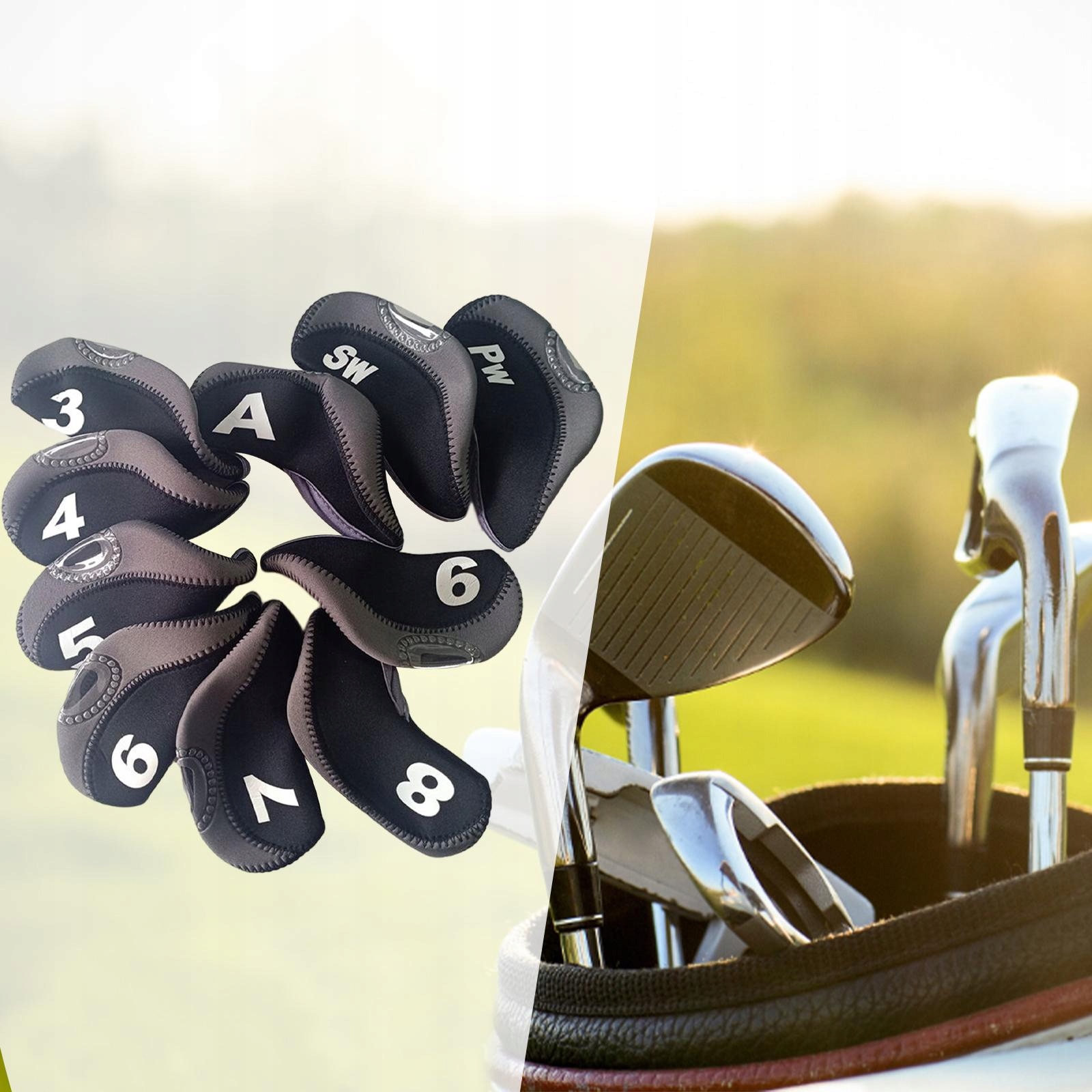10 шт. Чохлів для гольфу з неопреновим протектором для гольфу, чорно-сірий