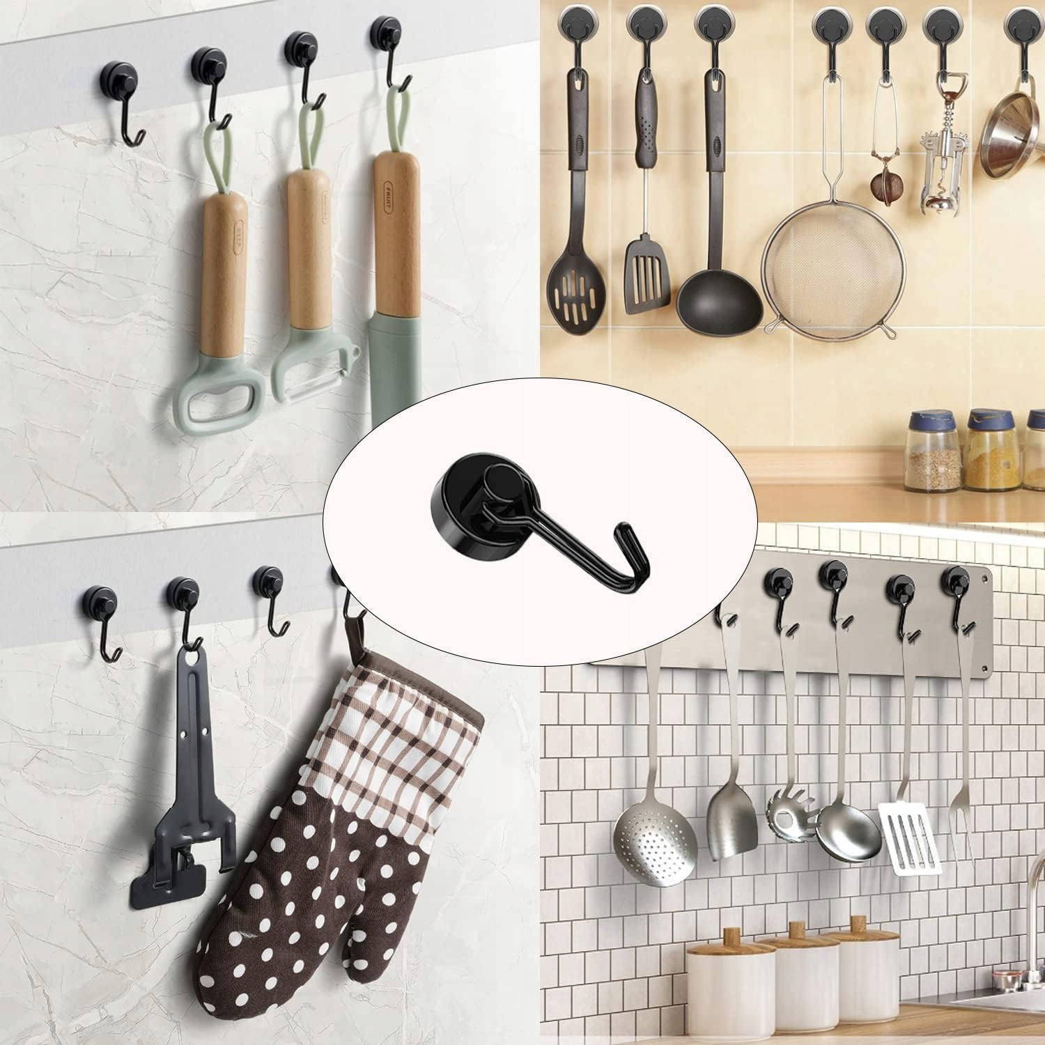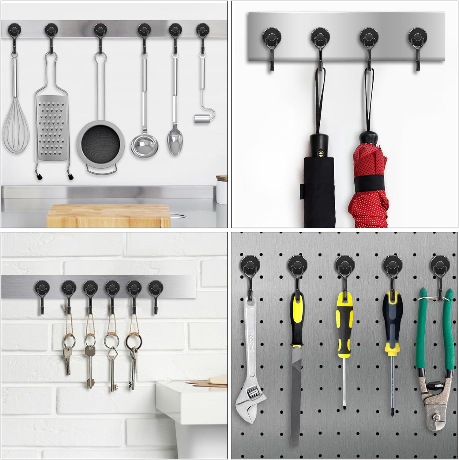 -Ці магнітні гачки мають 3 шари захисного покриття: нікель + мідь + nikiel (ni-cu-ni), який стійкий до іржі та корозії, що робить їх ідеальними для довгострокового використання. Він коливає 180 градусів, забезпечуючи максимальну гнучкість та функціональність при повісі.