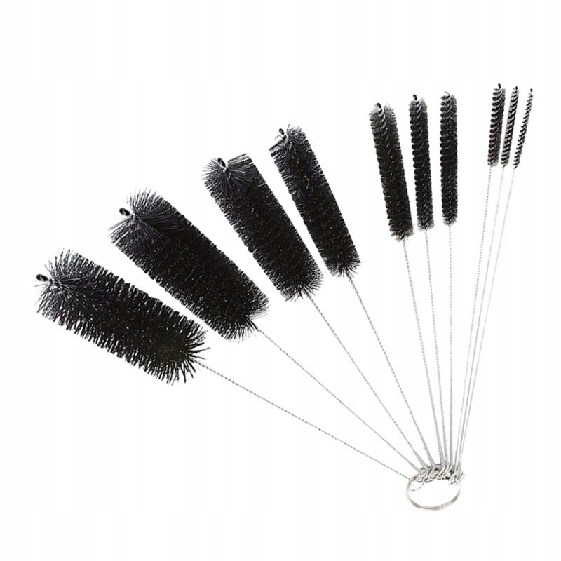 10 різних розмірів пензлів для очисних труб пляшками 2 мм, 3 мм, 4 мм, 5 мм, 6 мм, 8 мм, 12 мм, 16 мм, 20 мм і 24 мм (1/16, 1/9, 1/6, 1/5, 1/4, 1/3, 1/2, 2/3, 3/4 і 1 дюйма) загальної довжини 20 CM (8 дюйма) Ідеально підходить для очищення кавоварників або невеликих дзьобів та труб.