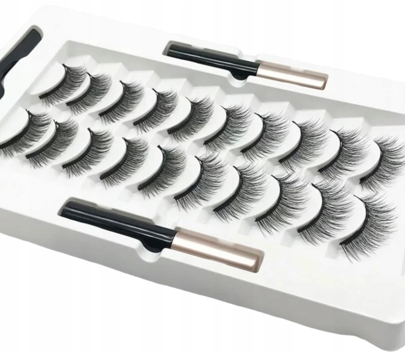 10 SZT. SZTUCZNE RZĘSY MAGNETYCZNE 10+PĘSETA+EYELINER
