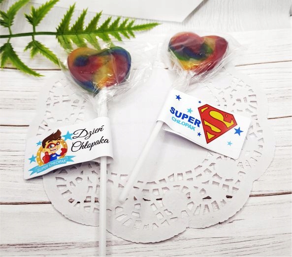 Льодяник + наклейка, всі ці товари упаковані в окремі групи, для самостійної збірки (це знижує ризик пошкодження при транспортуванні). Після отримання товару самостійно наклейте готову наклейку.