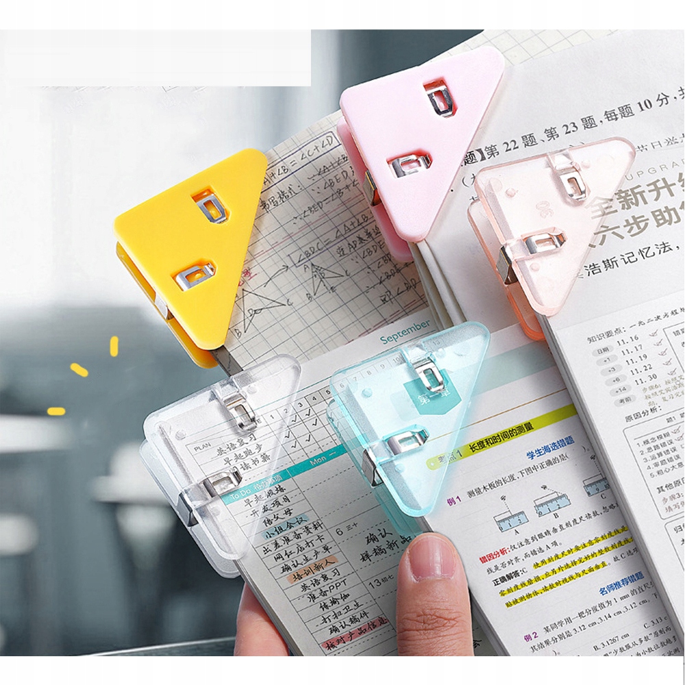 Кутові затискачі: можна використовувати для скріпок для книг, скріпок для паперу, скріпок для рахунків, квитків у кіно, закусок, закладок, оцінювання тестів паперових матеріалів, сортування музики та інших матеріалів тощо.