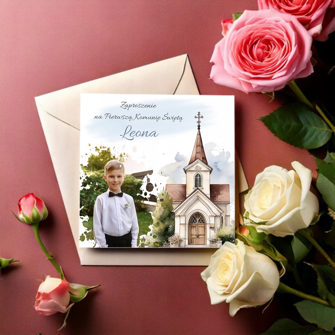 10 шт. Запрошення до першого Святого Причастя персоналізувало 15 х 15 см + конверт