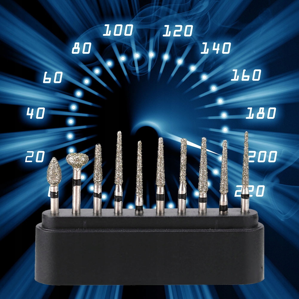 - 10 абсолютно нових алмазних стоматологічних борів найвищої якості.