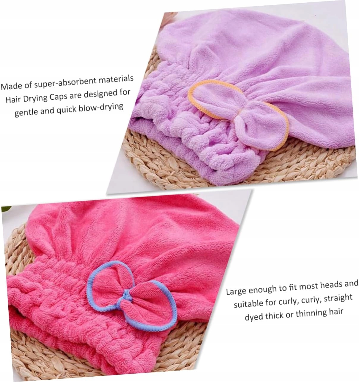 рушник для волосся для дівчат, ідеально підготовка дітей та для сімейних поїздок, забезпечує корисну користь. Зручне волосся Шапочка для висушування волосся оснащена луком та гнучкою смугою, яка може міцно прикріплювати шапку для волосся. Ви можете легко ним користуватися. Рушник для волосся для довгих волосся модні та простий рушник для висушування волосся має гарне поглинання води, завдяки якому волосся висихають. Рушник для жінок характеризується невеликими розмірами, а низька вага дуже зручно носити та подорожувати. Швидкі рушники для волосся, достатньо великі, щоб поміститися на більшості голови і підходить для кучерявого волосся з кучерявим пофарбованим товстим або протоншувачем.