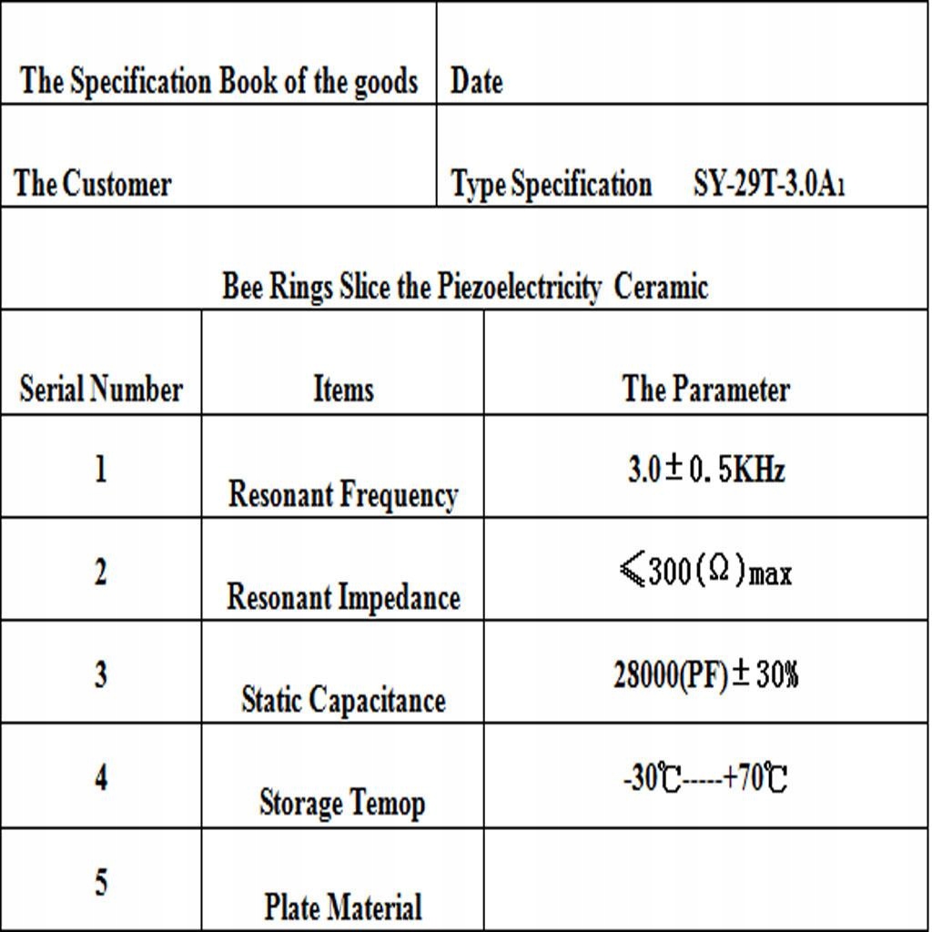 Резонансна частота (кГц): 3,0 +/- 0,5 кГц