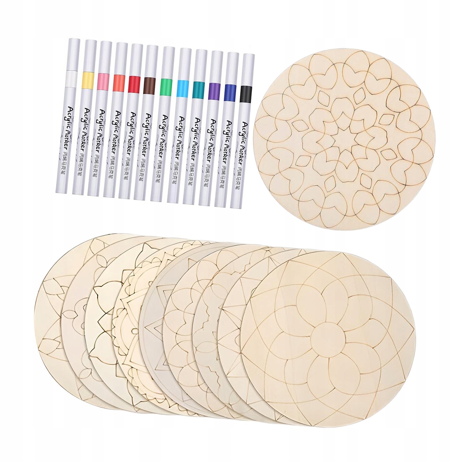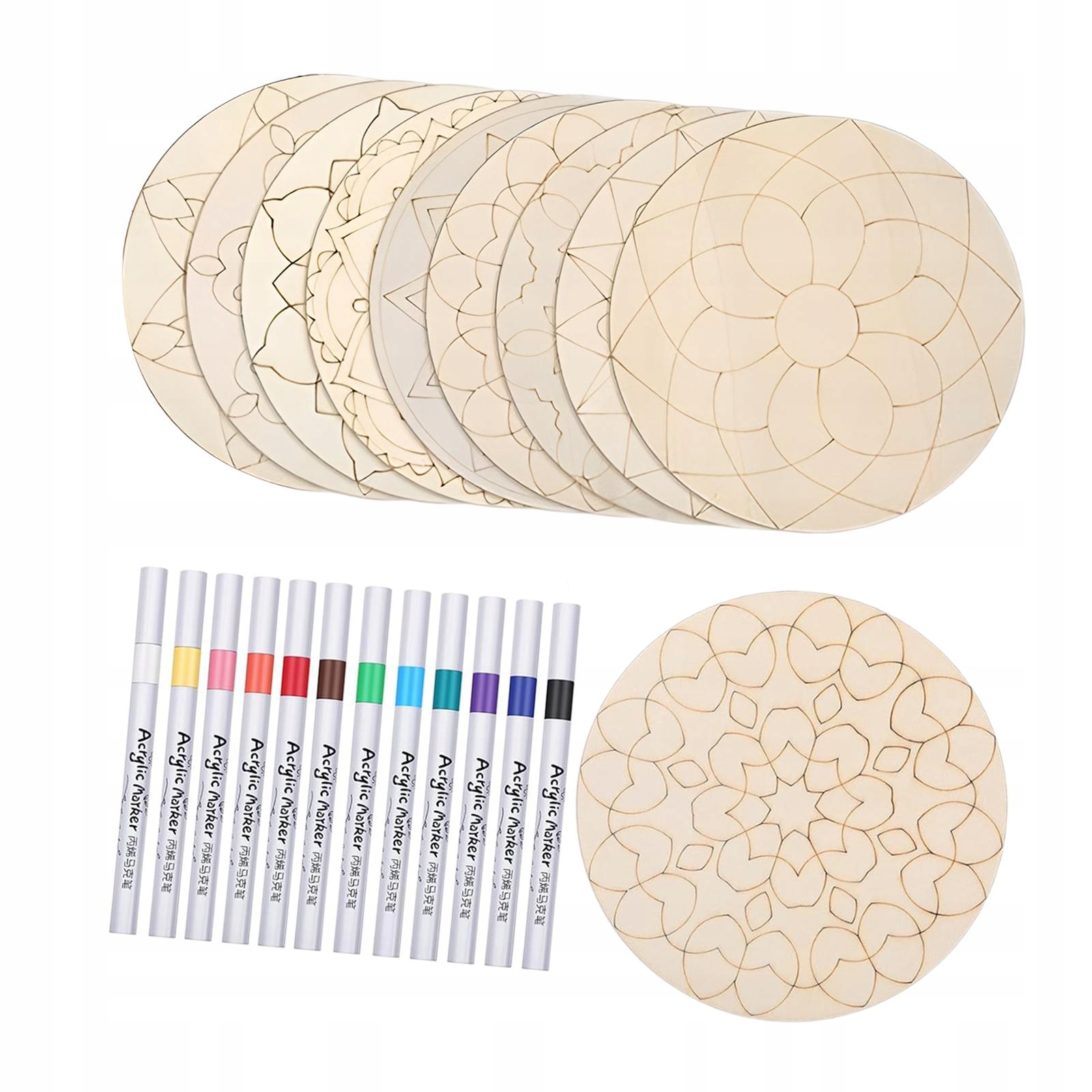 [Пакет містить]: Цей комплект з фарбування дерев’яних мандали оснащений 10 дерев’яними вирізами та 12 барвистими маркерами. Кожен унікальний і красивий, забезпечуючи достатній вибір для ваших геніальних потреб у ремеслі.