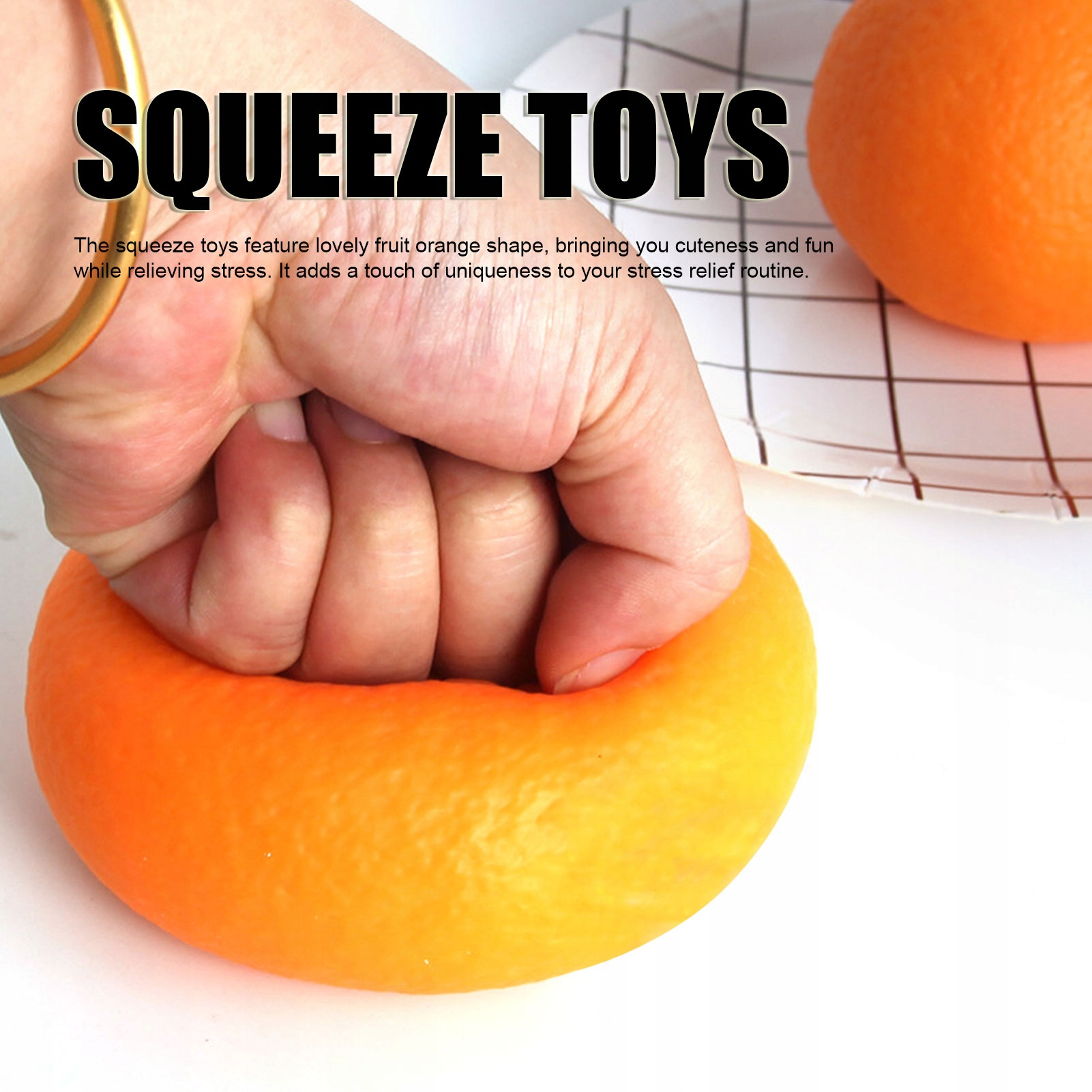 3. Зняття стресу: просто стисніть помаранчеву іграшку кінчиками пальців, щоб зняти стрес і напругу. Допомагає розслабитися та зняти тривогу, забезпечуючи швидке та ефективне рішення для зняття стресу.