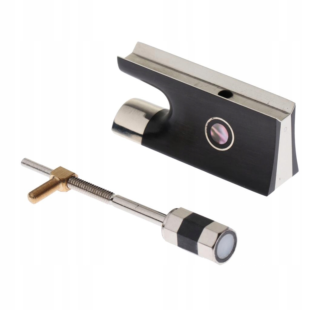 Гебанська арка жаби жаби створена для 4/4 скрипки, виготовлених з чорного дерева та нікель -сріблястого устілки, подвійних слайдів