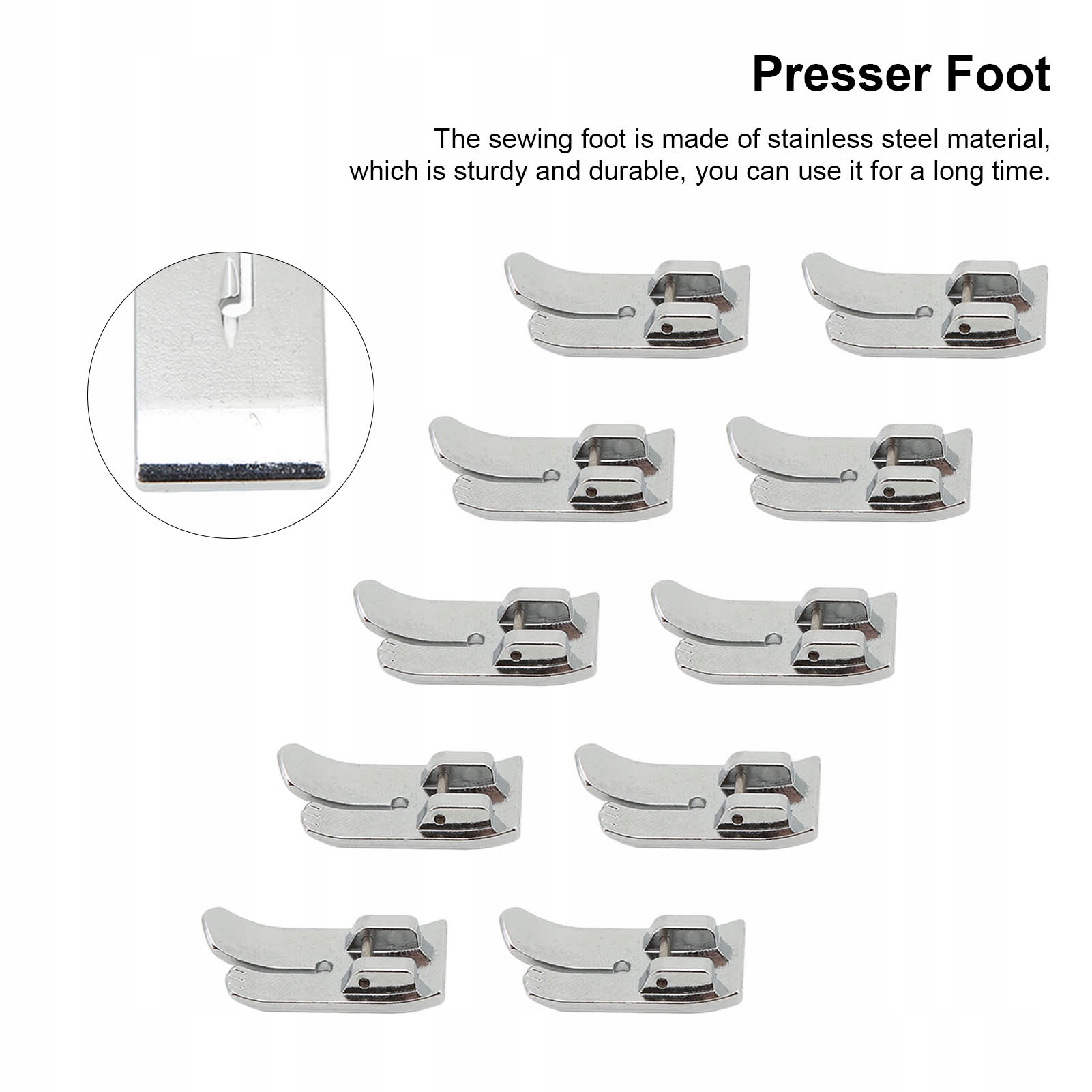 3. [Суцільна і міцна] швейна нога виготовлена з нержавіючої сталі, яка є твердим і міцним, її можна використовувати протягом тривалого часу.