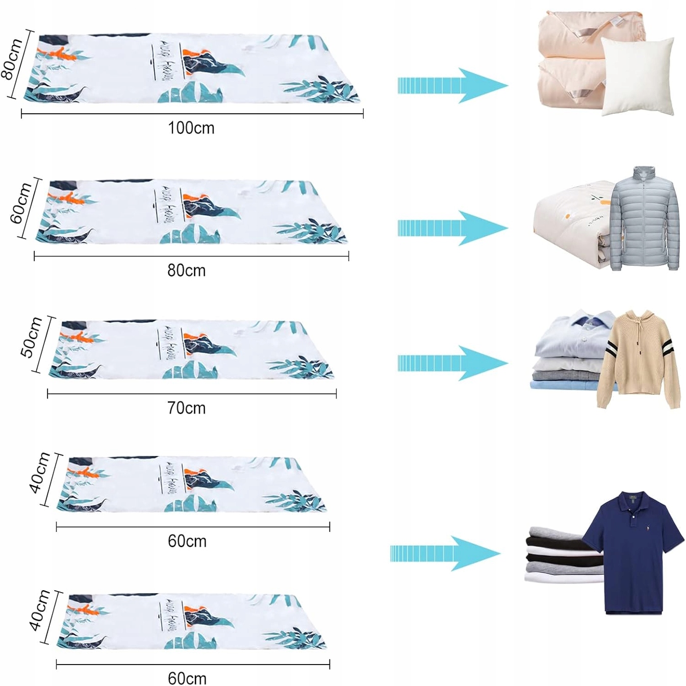 Просто покладіть свій одяг у сумку, закрийте її та скористайтеся насосом або пилососом, щоб видалити повітря зсередини! Запаковані продукти зменшують свій об'єм до 80%! Завдяки цьому ми можемо економити місце та підтримувати порядок у гардеробі.
