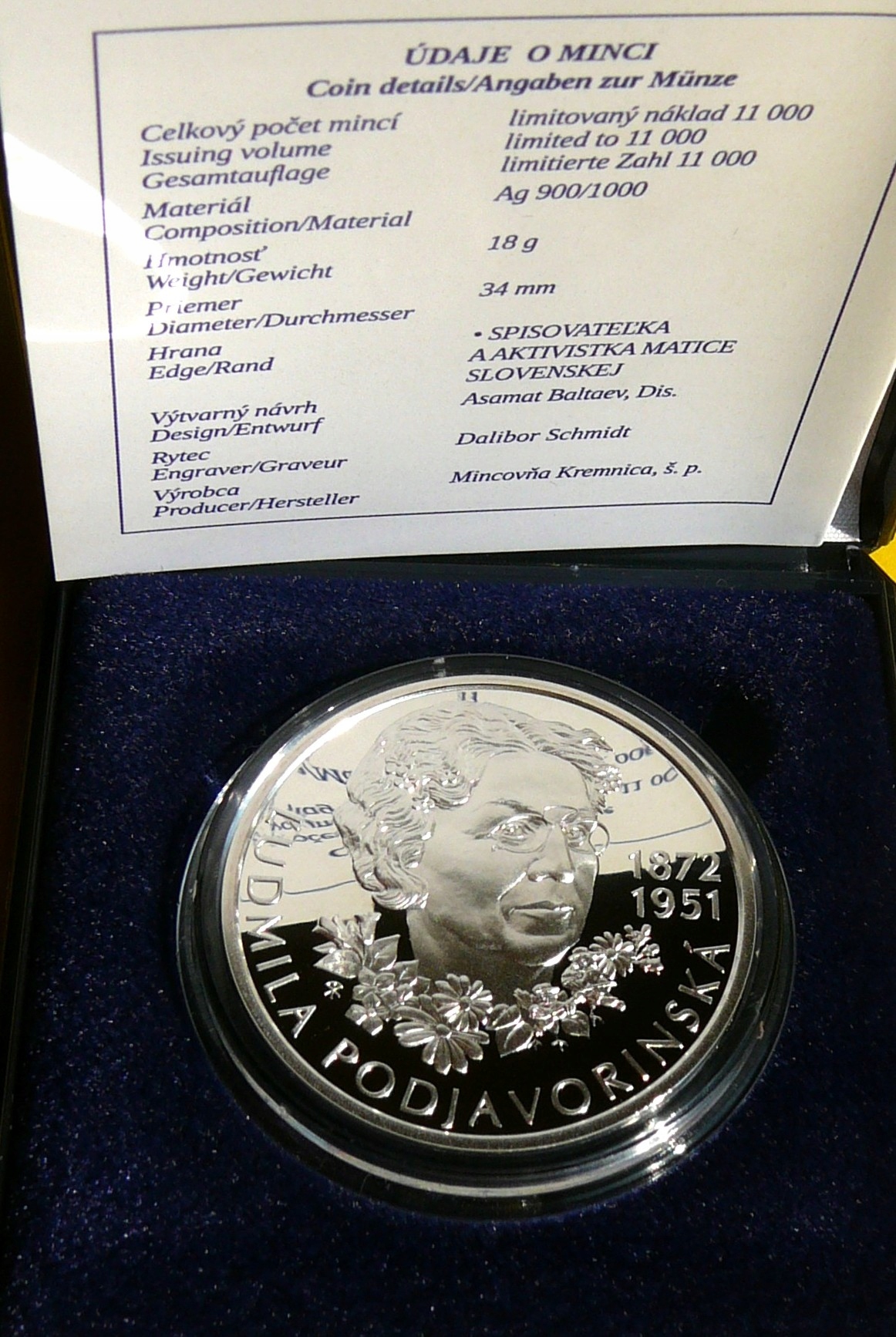 НА АУКЦІОНІ ПРОДАЄТЬСЯ ЧУДОВА ОРИГІНАЛНА РІДКІСНА КОЛЕКЦІЙНА СРІБНА МОНЕТА - 10 ЄВРО - СЛОВАЧЧИНА 2022 - 150 РІЧНИЦЯ З ДНЯ НАРОДЖЕННЯ ЛЮДМИЛИ ПОДЯВОРІНСЬКОЇ - 900 СРІБЛО - ДЗЕРКАЛЬНА МЕТКА - МОНЕТНИЙ ЦІН - РІДКІСНІ - РІДКІСНІ - ЛИШЕ ВИДАННЯ 11 000 ШТУК!! + СЕРТИФІКАТ СПРАВЖНІСТІ + ФУТЛЯР- НА ІНШИХ АУКЦІОНАХ Я ПРОПОНУЮ МОНЕТИ З ЦІЄЇ СЕРІЇ - ПЕРЕГЛЯНУТЬ