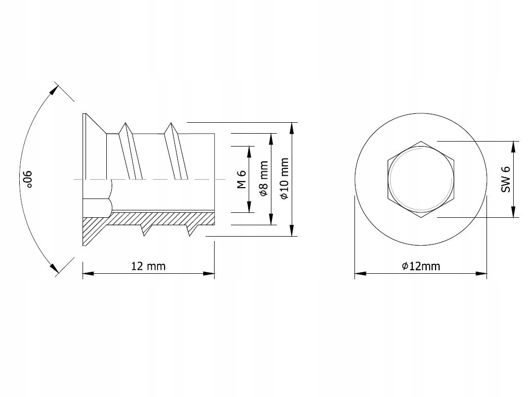 - Діаметр головки 12 MM b> , Розмір M6, довжина 12 ММ.