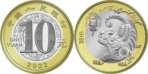 10 юанів (2022) Китай - рік Тигра, китайський знак зодіаку