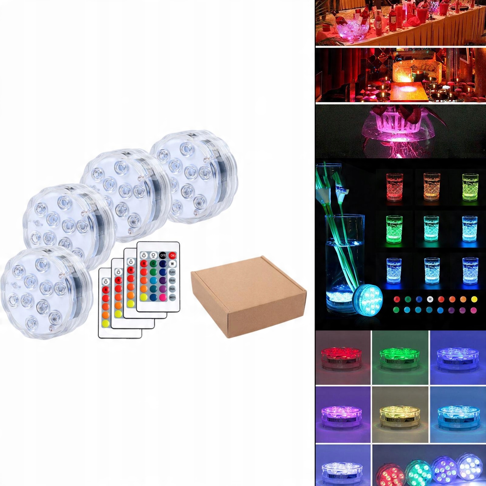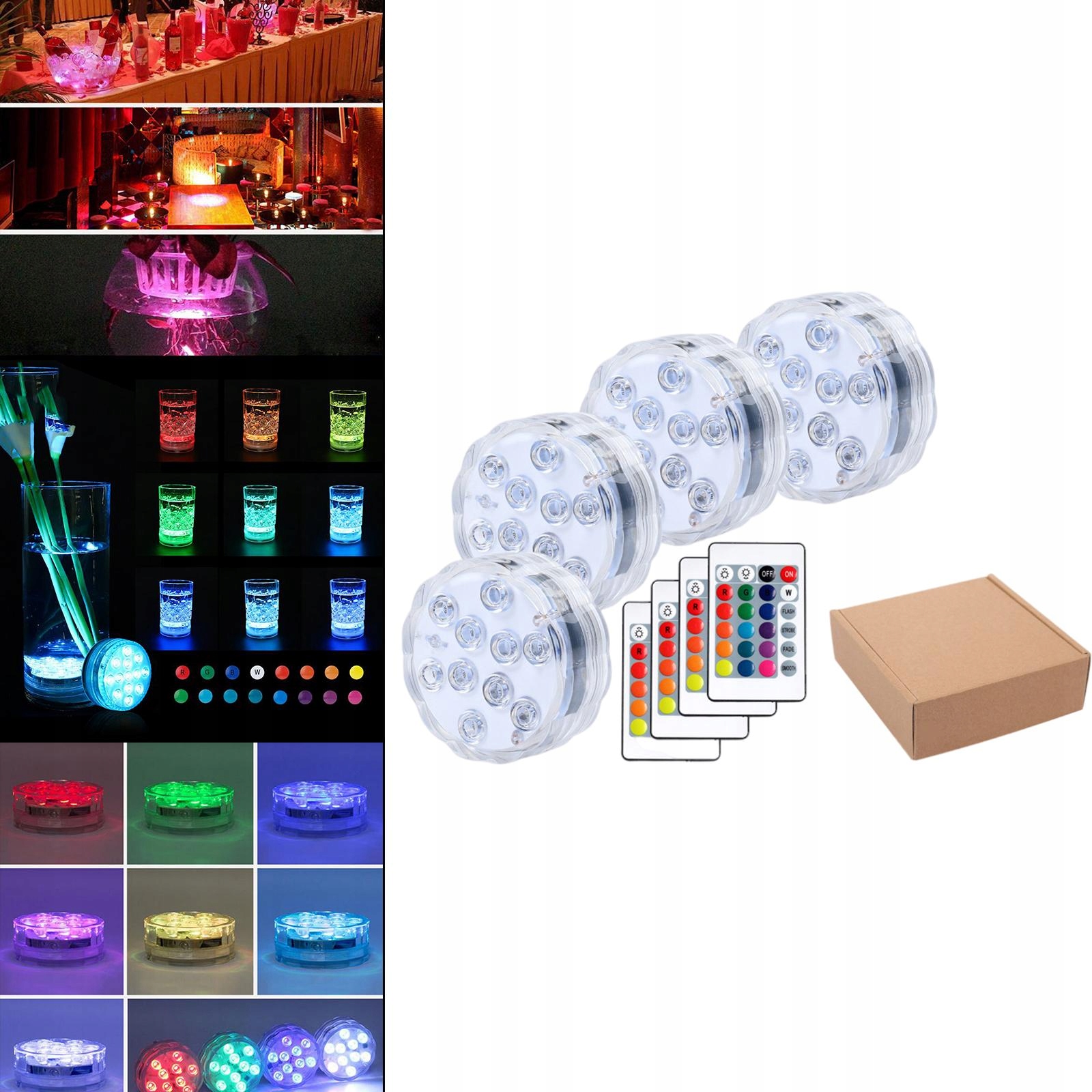 IP68 водонепроникні, 10* 5050rgb світлодіоди, які можна зануритися у воду. Віддалені 16 статичних кольорів +4 (Flash/Strobex/Fade і гладка) + регульована яскравість. 4