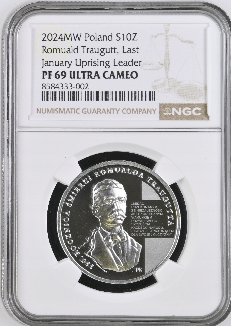 10 злотих 2024 р. 160 РІЧНИЦЯ СМЕРТІ РОМУАЛЬДА ТРАУГУТТА NGC PF69