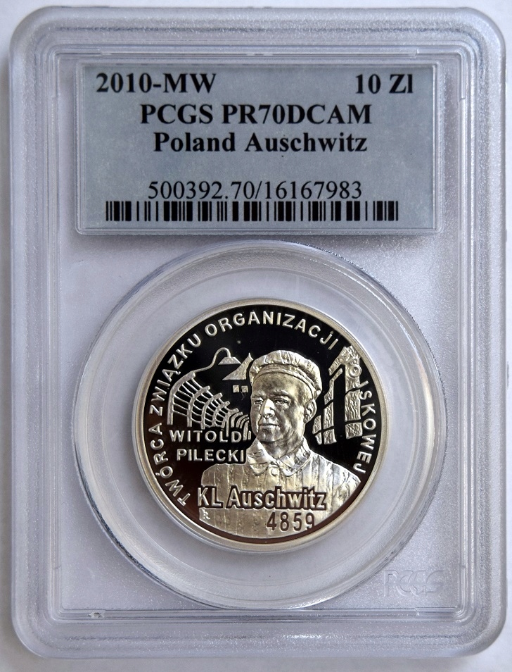 10 злотих ВІТОЛЬД ПІЛЕЦЬКИЙ - АУШВІЦ 2010 PCGS PR70