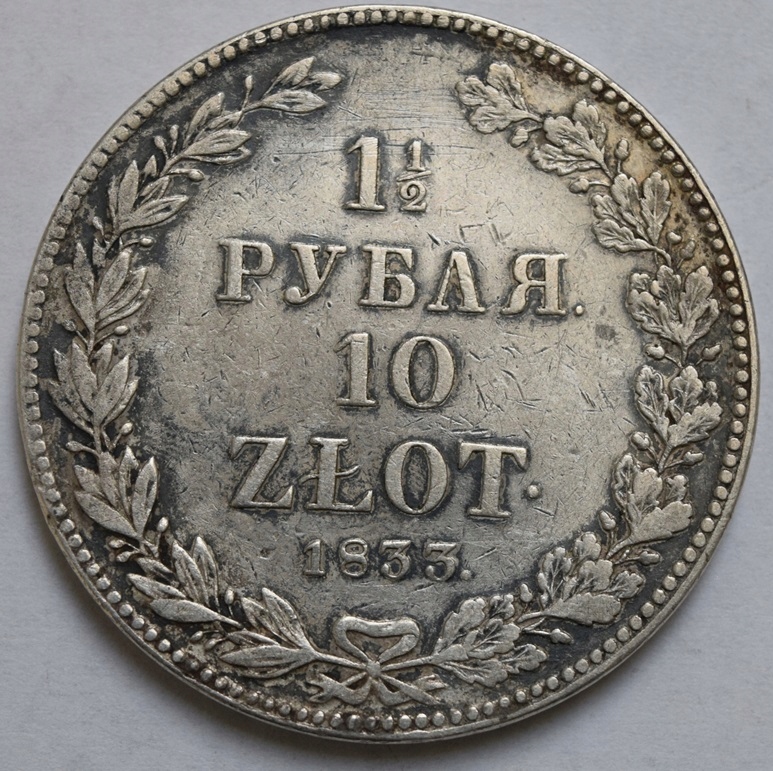 10 ЗЛОТИЙ - 1 1/2 РУБЛЯ 1833 РОКУ