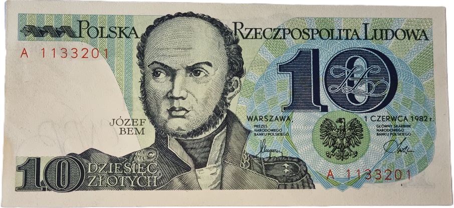 10 Zlotys Banknote (1982) - Józef Bem Series A