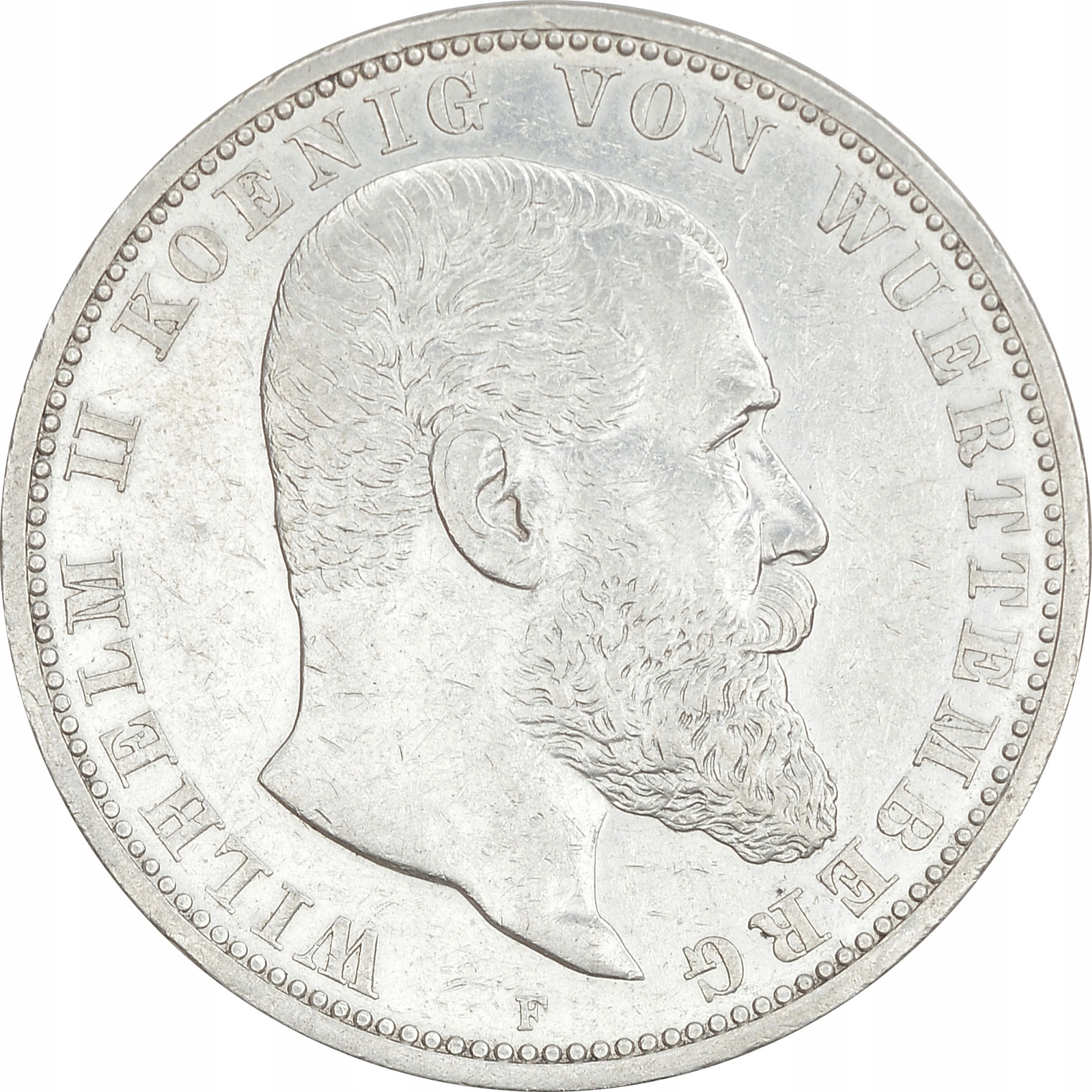 10.db.WIRTEMBERGIA , ВІЛЬГЕЛЬМ II, 5 МАРОК 1907 F