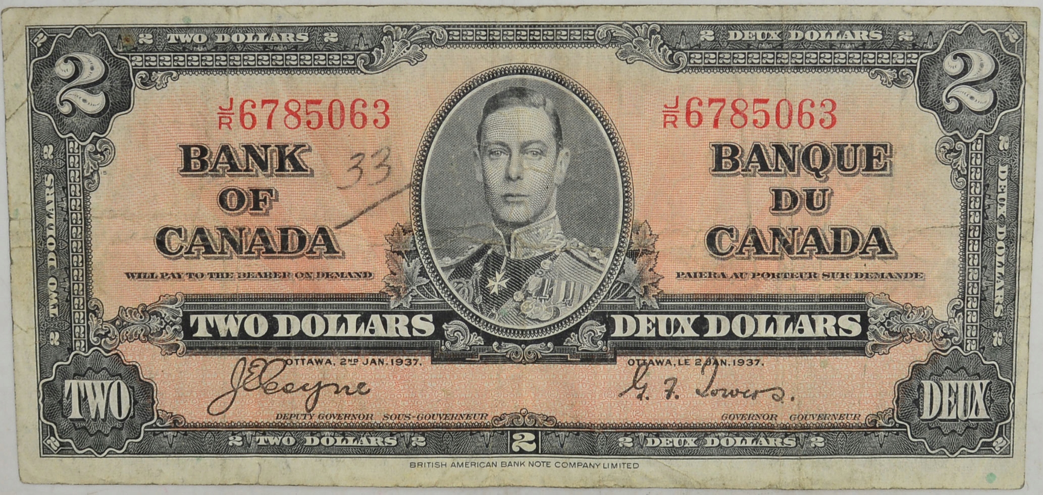 10.fu.Canada , 2 долари 1937 р. рідко, P.59.c , St.3+