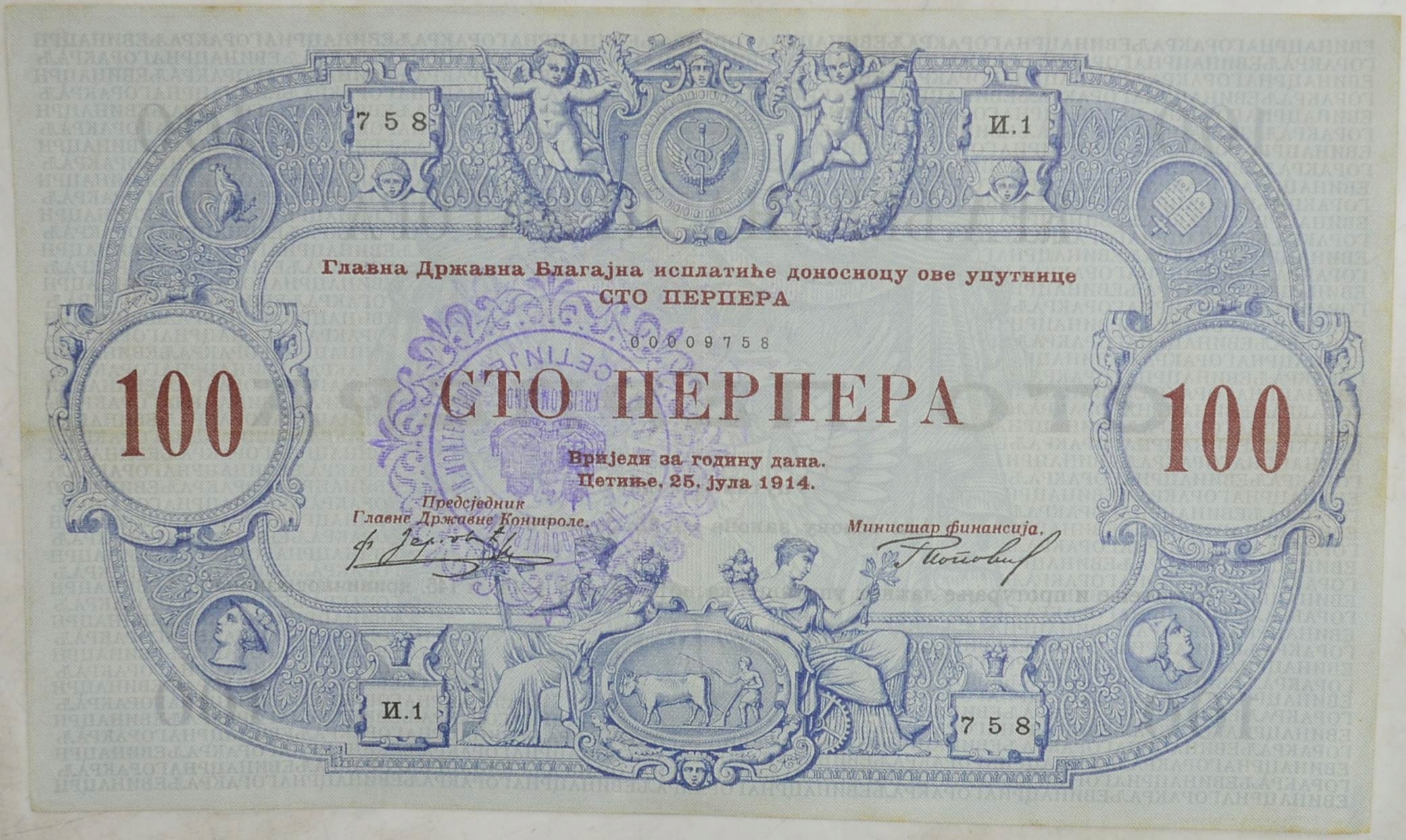 10.fu.Czarnogóra , Цетіньє, 100 перперів 1914 р. рідко