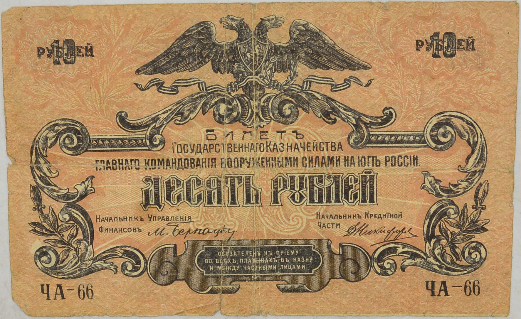 10.Південна Росія, 10 рублів 1919, P.S421.a , St.4+