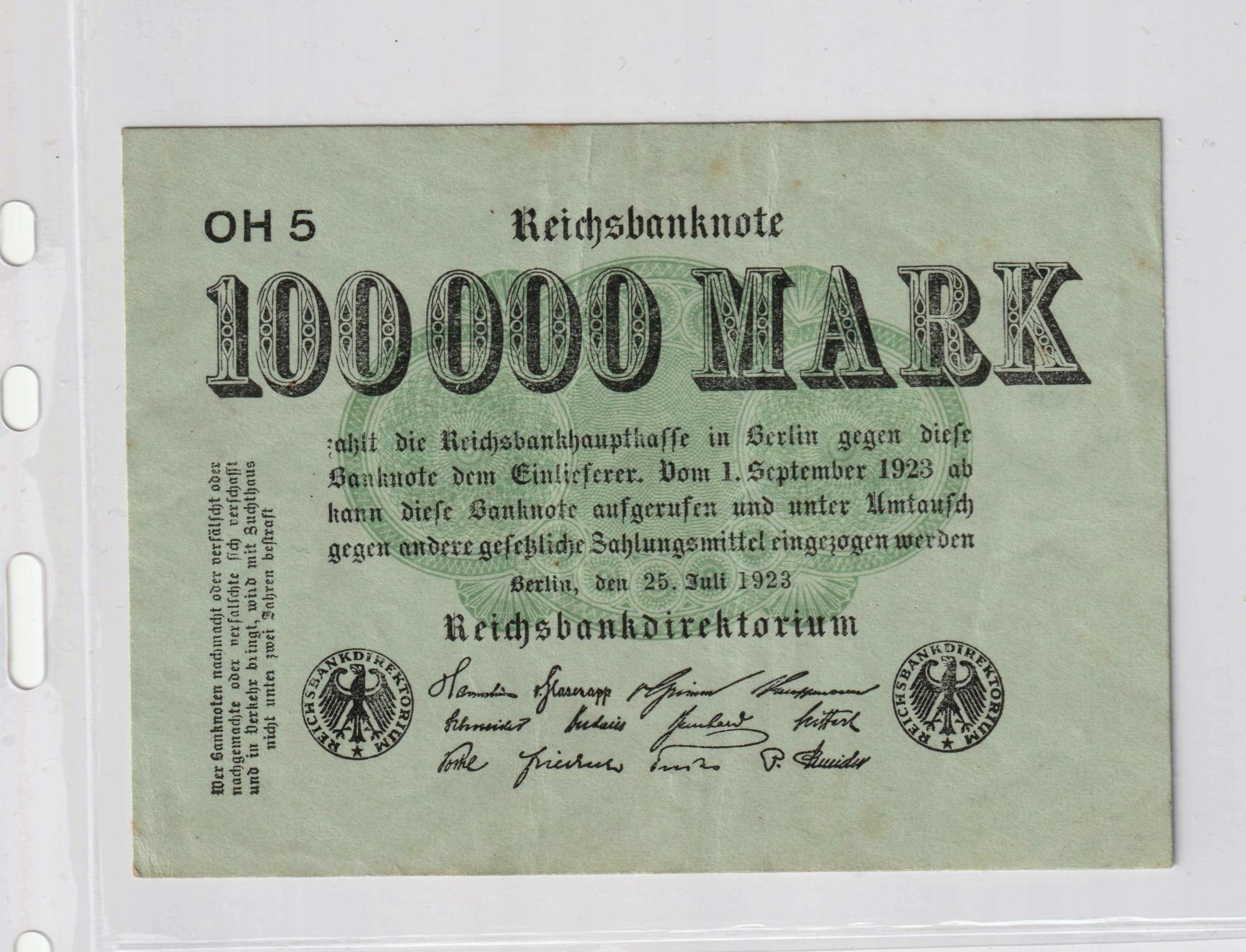 100 000 marek NIEMCY Reichsbanknote 1923 Ros 90a