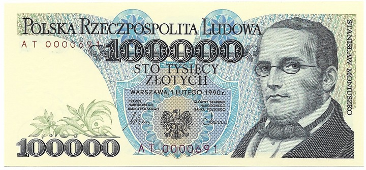 100 000 злотих СТ. Монюшко 1990 AT Series Stan/UNC