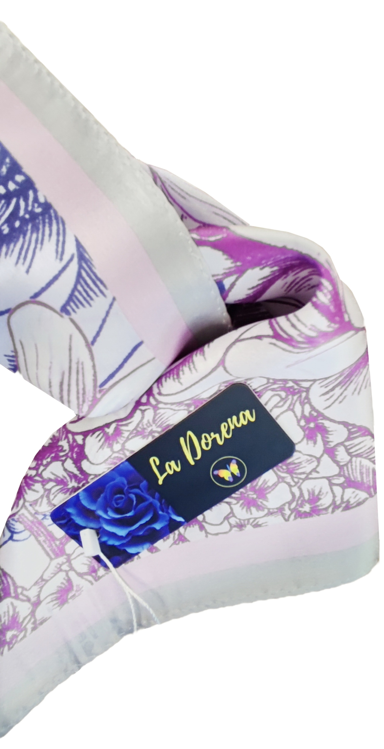 Колір тканини райдужний, шовковистий, не має штучного блиску та матовості, кольори змінюються в залежності від освітлення. Хитромудрий візерунок відсилає до королівських тканин із казки «1001 ніч», а широка палітра кольорів створює широкі можливості композиції.