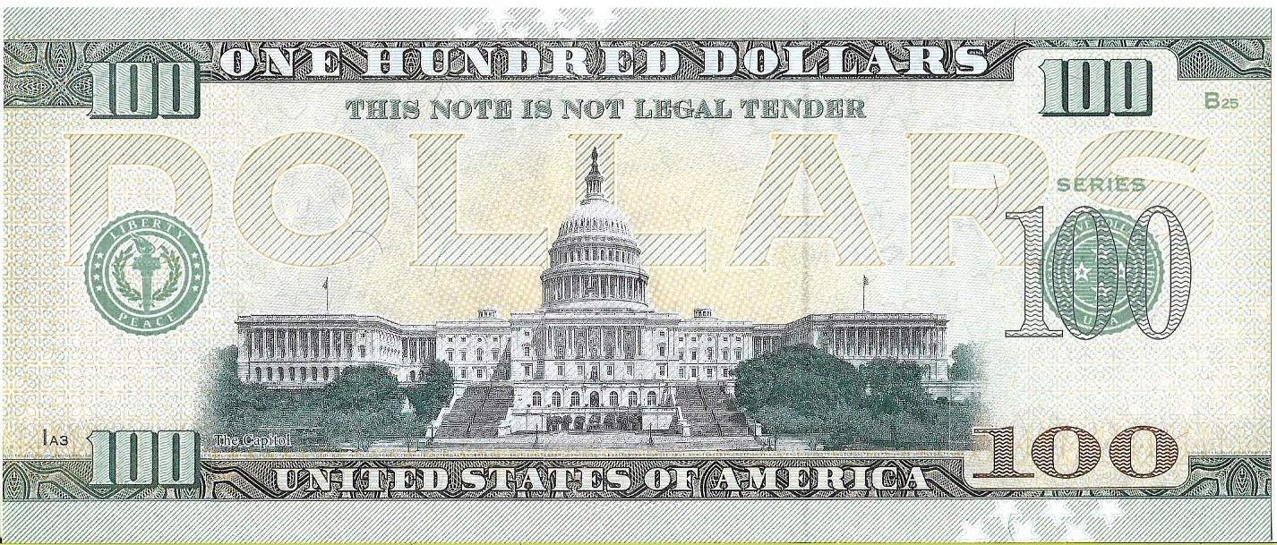 Банкнота має мікроскопічні написи (мікровідбитки) та голограмний знак із написами: (вгорі) США внизу (LIBERIY)