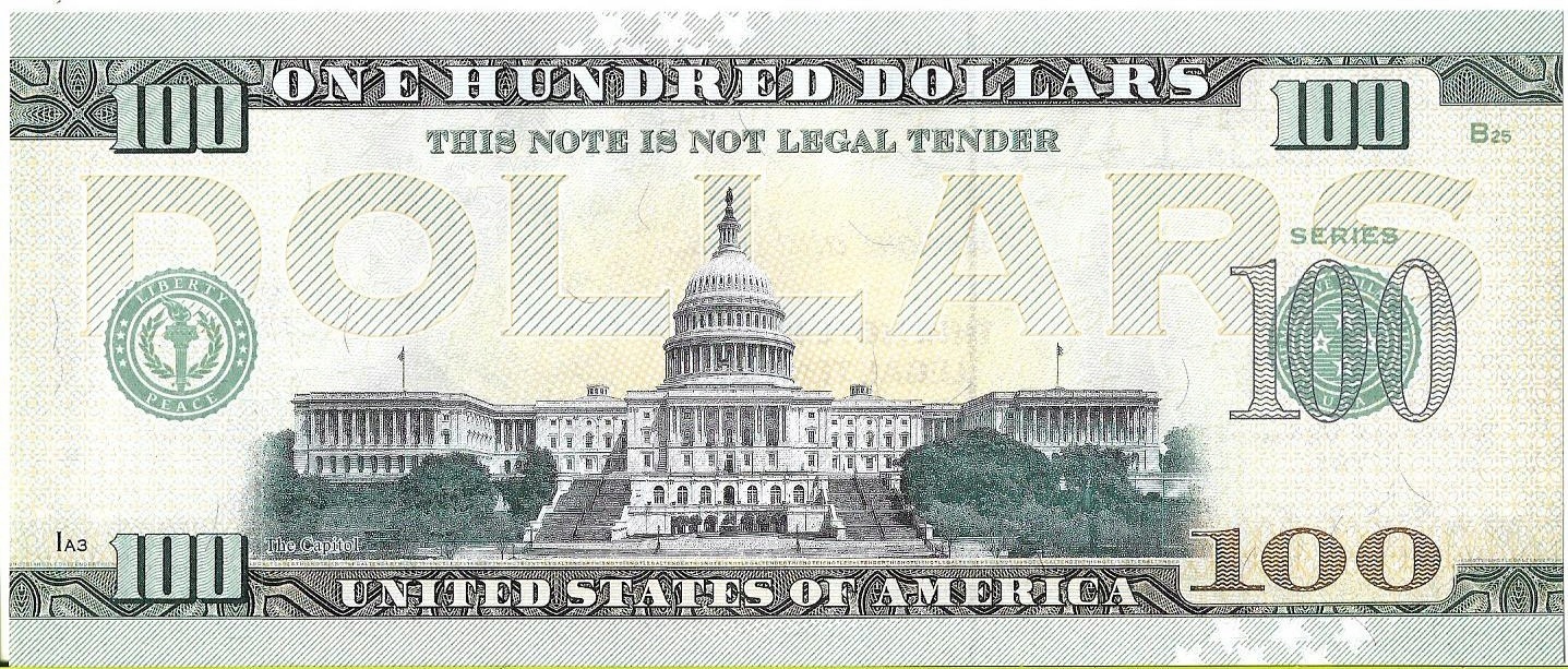Банкнота має мікроскопічні написи (мікровідбитки) та голограмний знак із написами: (вгорі) США внизу (LIBERIY)