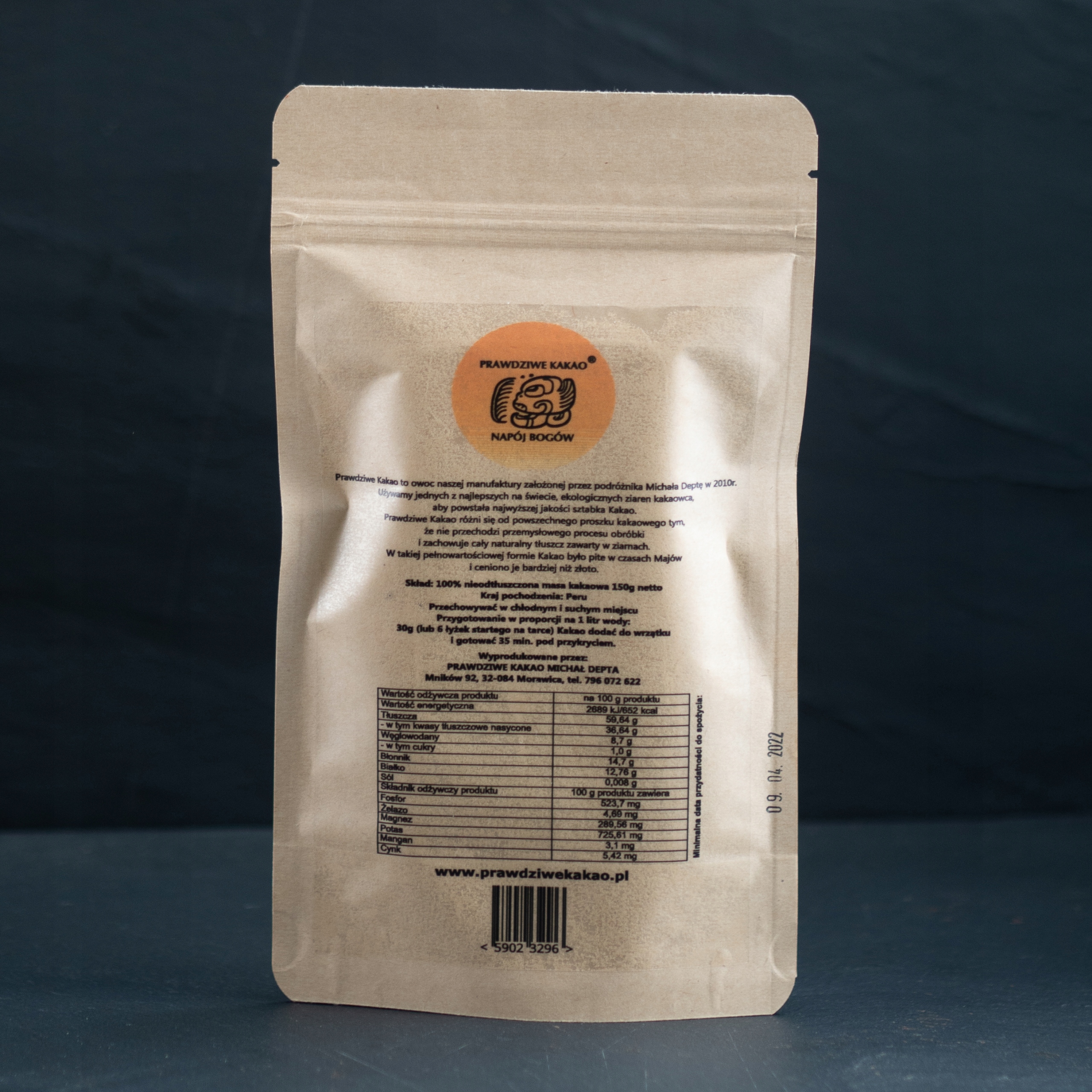 Справжній какао какао триває приблизно на 5 літрів напою відповідно до нашого первісного рецепту, заснованого на традиційних способах пиття какао з місць, де ця форма вижила з часів предків.