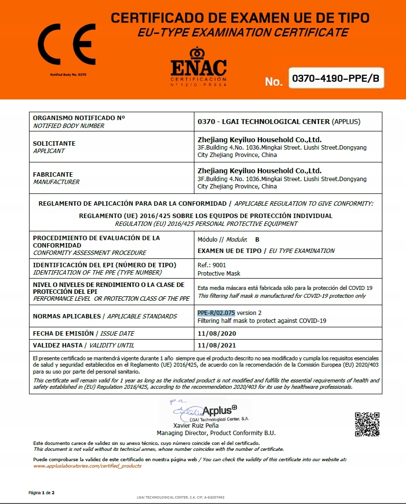 дихання , що складається з фільтрувального матеріалу - поліпропілену. Стандарт безпеки - KN95, а ефективність фільтрації - ≥95%. Розроблений для захисту респіраторної системи від некокорних рідких і твердих частинок, тобто смогу, пилу, аерозолів тощо. Коефіцієнт фільтрації твердих частинок: PM 2,5.