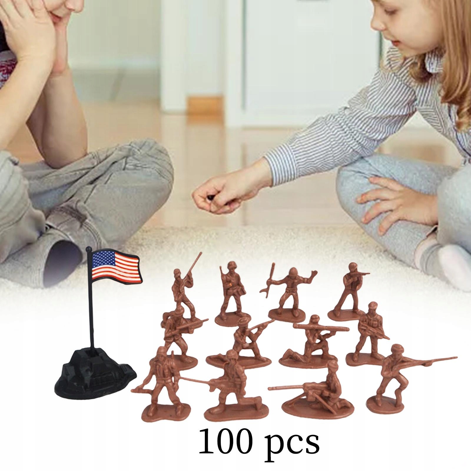 Упаковка включає: 100 штук фігурки солдатів, 12 різних положень та рук і 1 прапор. Невеликі деталі, хороший баланс.