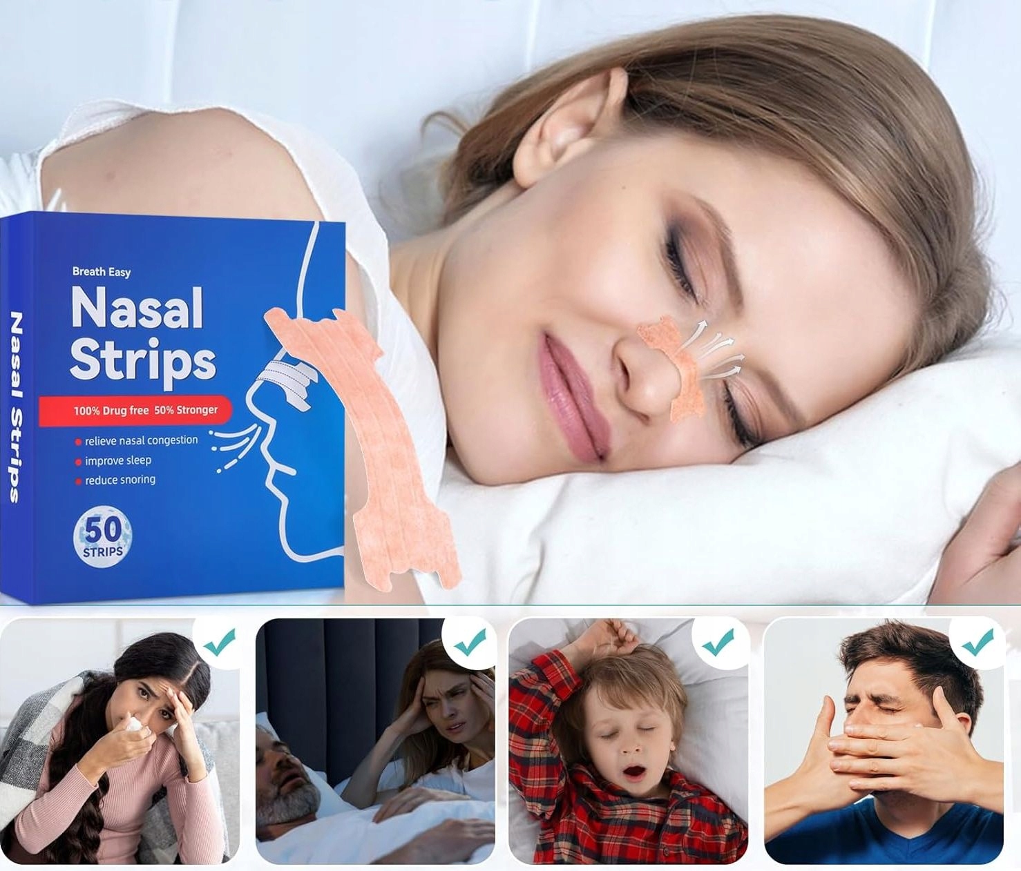 Смужки для носа зменшують хропіння та полегшують дихання. Вони розширюють носові ходи, збільшуючи потік повітря через ніс, що дозволяє вдихати більше кисню. Краще збагачення організму киснем збільшує енергію, усуває головний біль і прискорює регенерацію під час сну.