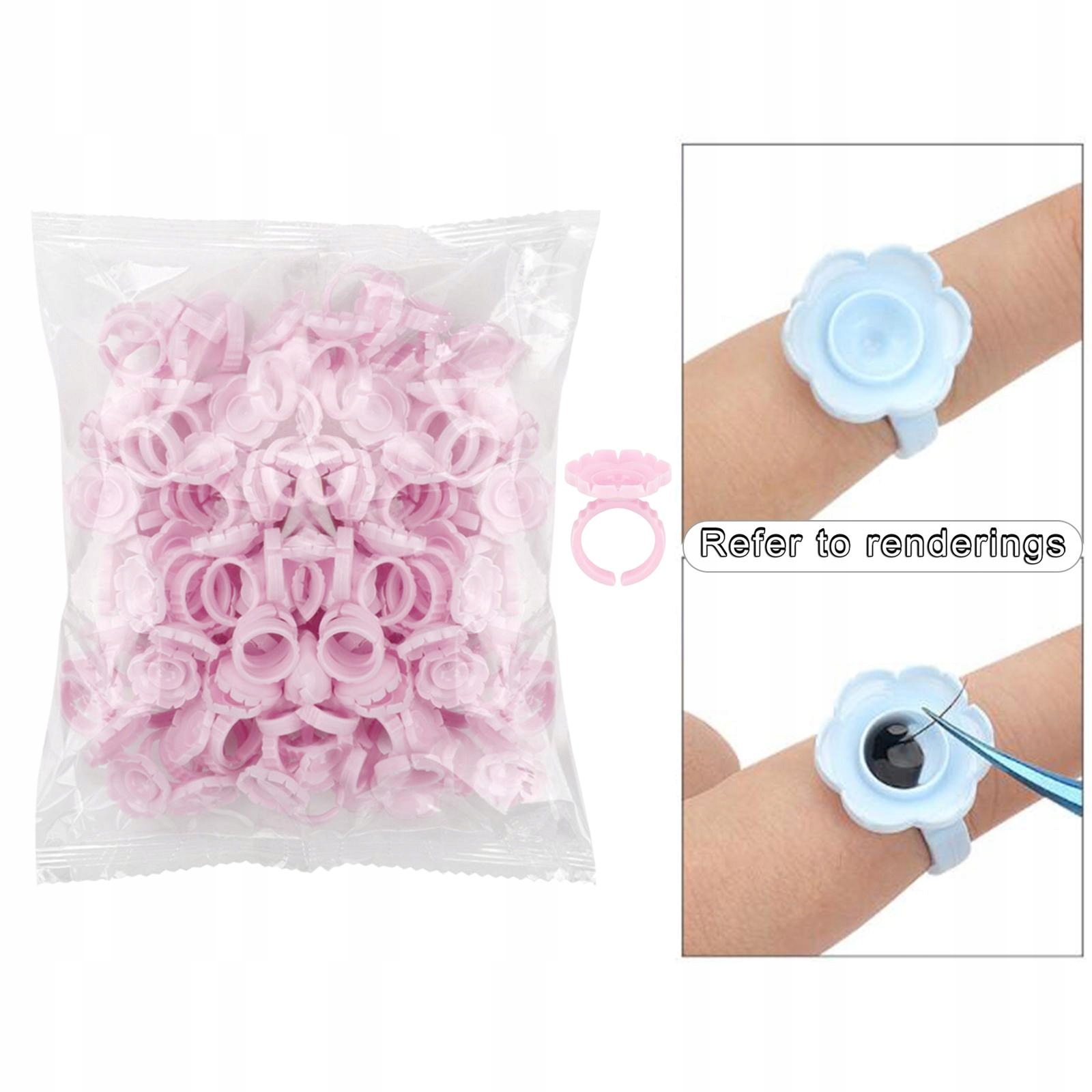 100 одноразових кілець для нарощування вій Blossom Eyelash Extension Pink.