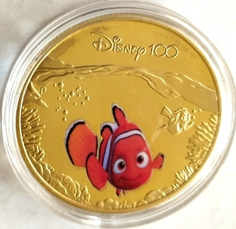 100 років Дісней - Немо, красивий, позолочений нумізмат, 40 мм !!!
