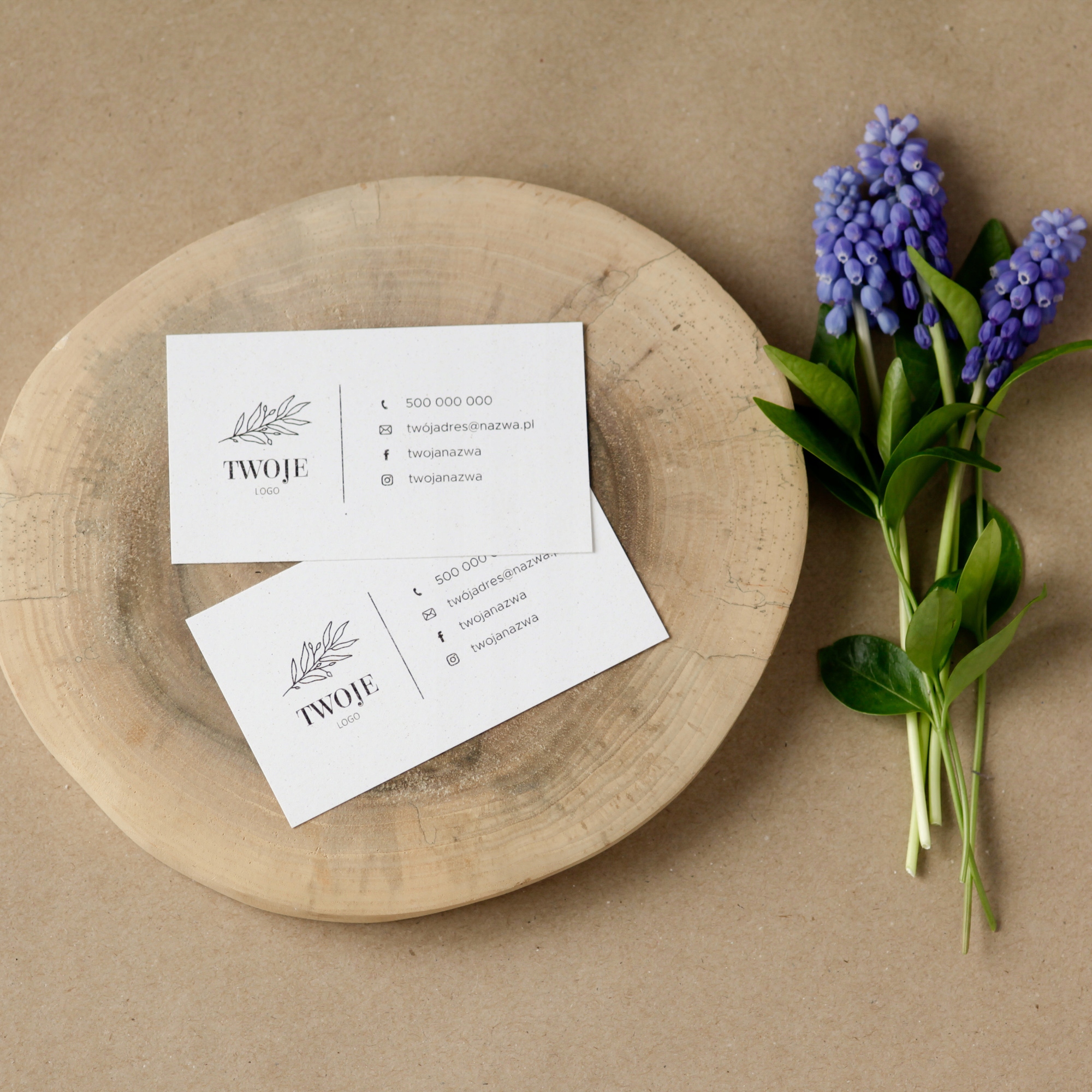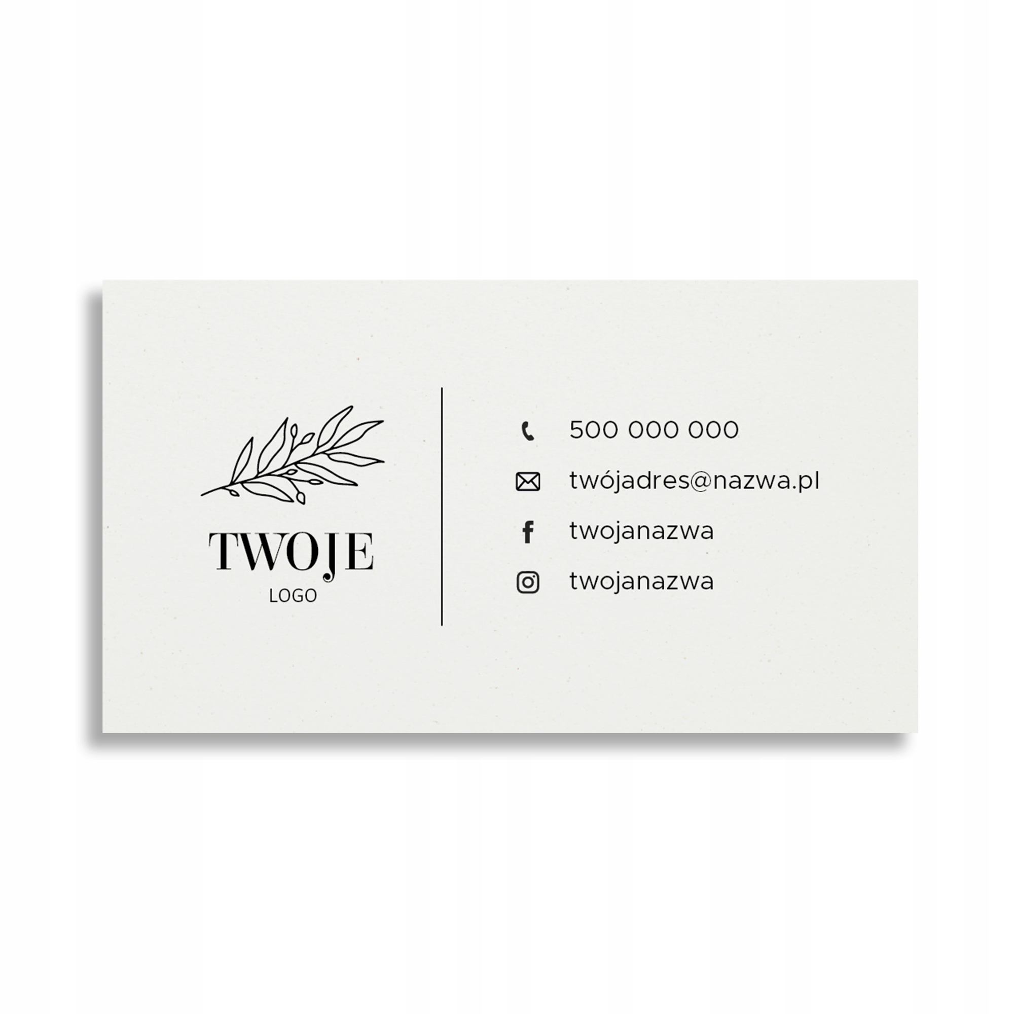 - Чорний друк із вашим логотипом і вибраними контактними даними: адреса веб-сайту, соціальні мережі, номер телефону