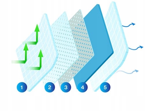 5-шарова, електростатична бавовняна тканина. Має ребро для носа та адаптується до форми обличчя, що забезпечує кращу герметичність. Рівень фільтрації до 95% від шкідливих часток, таких як пил, бактерії, віруси, рідини PM2,5 тощо.
