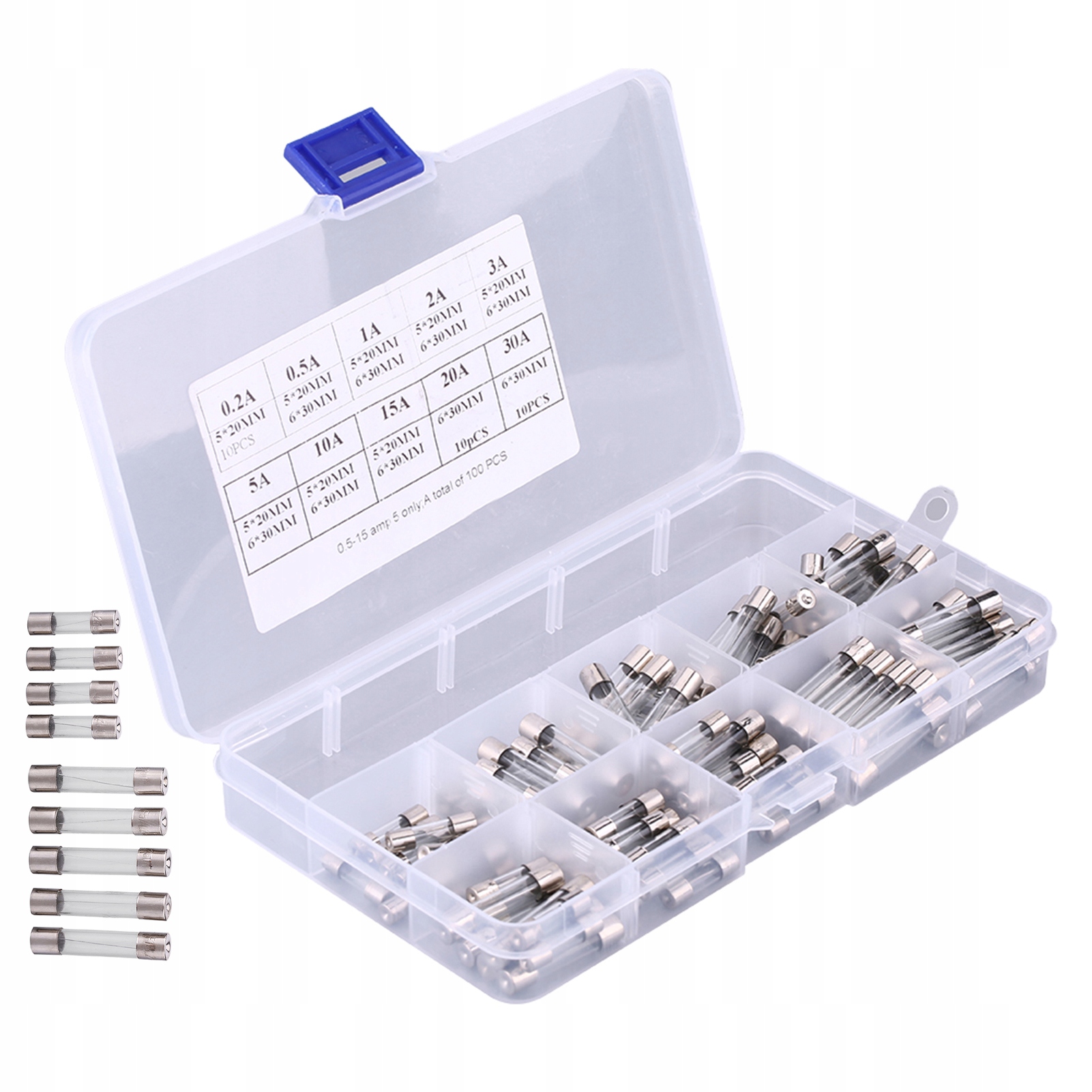 - 100 запобіжників зі скляною трубкою в одному наборі продаватимуться разом.
