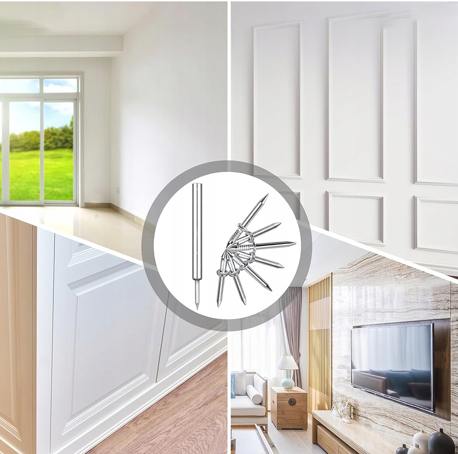 🟢 【Підходить для багатьох випадків】: Невидимі двосторонні захисні шурупи можна використовувати не тільки для встановлення плінтусів, але й для різних проектів з обробки дерева. Розвішування фотографій, розвішування дерев’яних прикрас тощо – ваші хороші помічники.A
