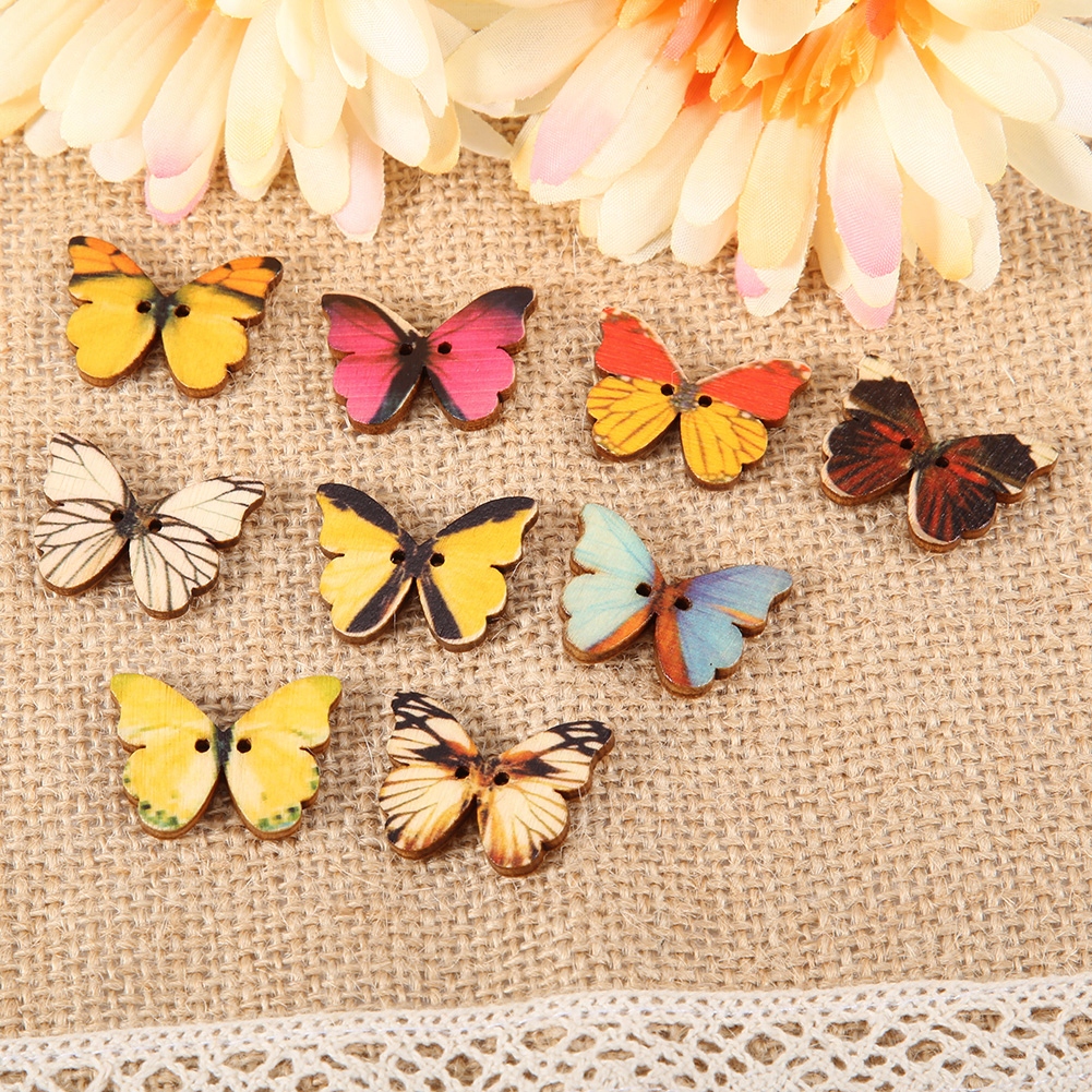 100 шт. дерев’яних ґудзиків-метеликів, швейних приладдя для рукоділля своїми руками, декорацій для скрапбукінгу (21*27 мм)