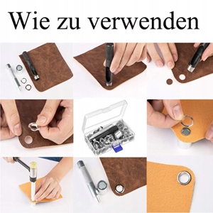 ? Простий у використанні? Ми пропонуємо повні 10 мм стібків, встановлених для полегшення установки. Спочатку розбийте отвір у полотні пробиванням отвору, потім підніміть набір гвинтів до стібків і, нарешті, прикріпіть гвинтовий набір до стібків за допомогою прикріпленого інструменту.