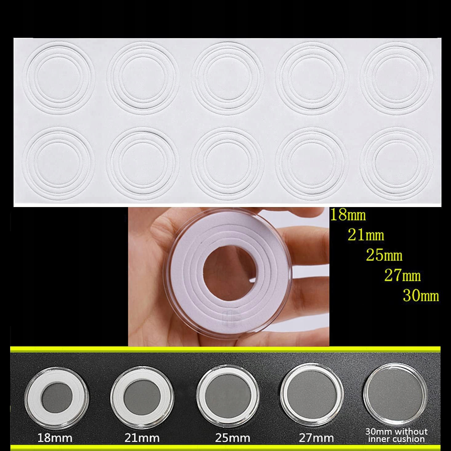 Укомплектовано 100 відповідними ущільнювачами з піни EVA, кругле та зносостійке внутрішнє кільце EVA регулюється, можна регулювати відповідно до розміру монет 18 мм/21 мм/25 мм/27 мм/30 мм. Пінопластові ущільнювачі допомагають утримувати монети на місці та добре захищають ваші монети, запобігаючи їх зрушенню та подряпинам.
