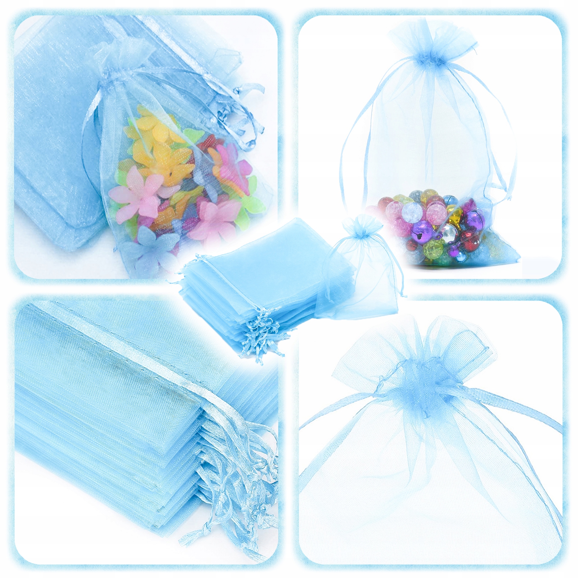 100 ШТ. СУМКА З ОРГАНЗИ ДЛЯ ВЕСІЛЬНОГО ПОДАРУНКУ ЮВЕЛІРНІ СУМКИ МАЛЕНЬКИХ БЛАКИТНИХ