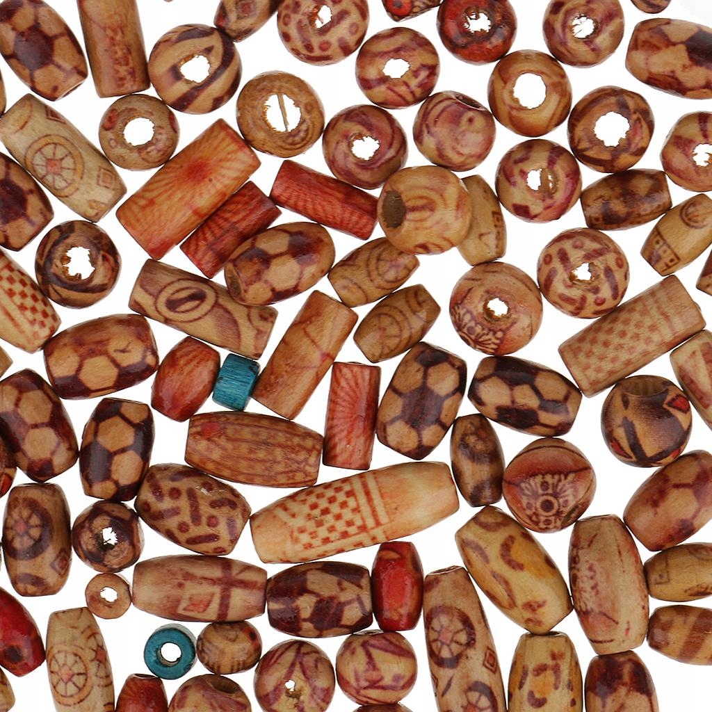 100 змішаних друкованих дерев’яних намистин. Велика намистина з ювелірними аксесуарами для ювелірних виробів