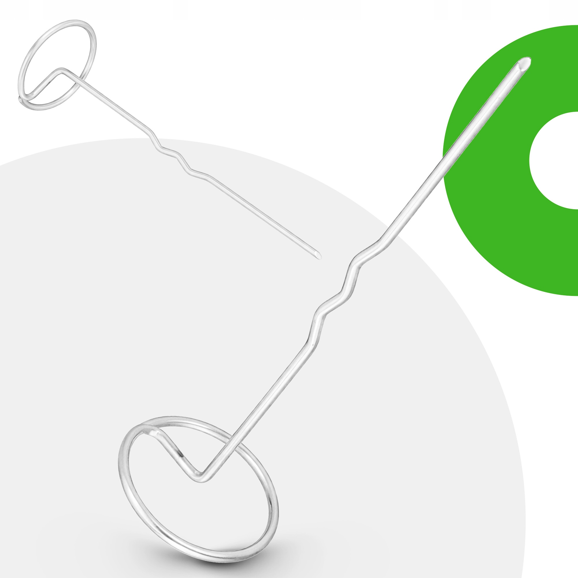 Для установки не потрібні інструменти - просто встромте шпильку в землю у вибраному місці. Завдяки своїй структурі добре працює як на легкому, так і на твердішому ґрунті. Використовується в садівництві, розсадництві та польових культурах, де важлива точність і довговічність кріплення.