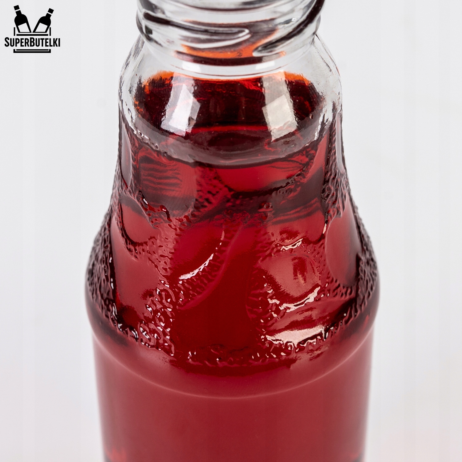 Пляшка для соку 330 мл з тисненням фруктів і заморожених продуктів на шийці - це інноваційний продукт, який поєднує в собі естетику і функціональність. Привабливий дизайн з мотивами яблук, груш, лимонів і листя вказує на натуральність і свіжість вмісту. Вибираючи наше рішення, ви можете бути впевнені, що ваш продукт буде виділятися на ринку та матиме визнання в очах споживачів. У повсякденному житті покращує захоплення пляшки, що важливо при наливанні та перенесенні. Обирайте якість та унікальний дизайн із нашим тисненням!